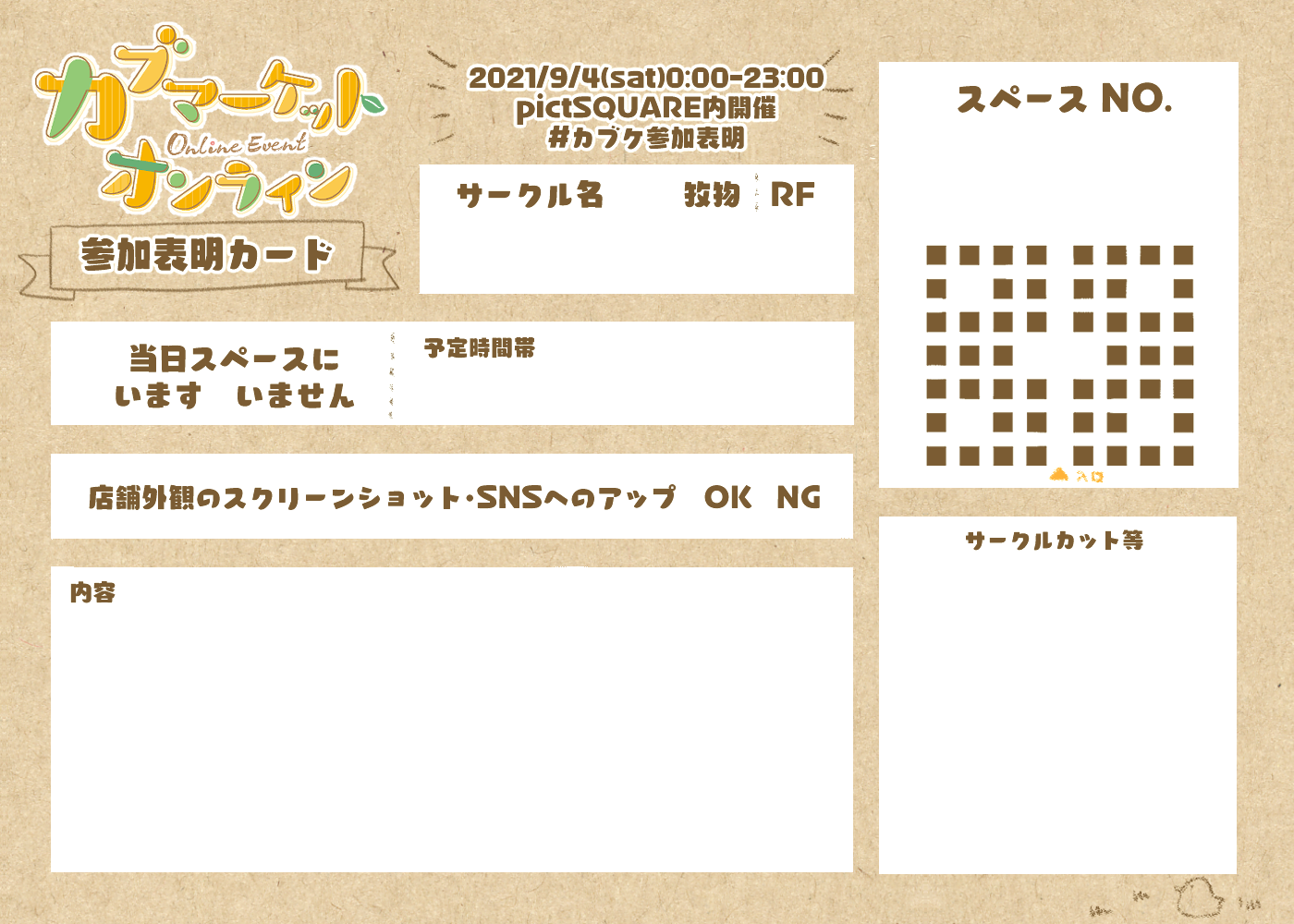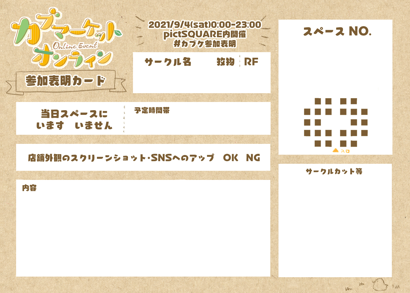 サークル参加表明カードです。DLしてお使いください。